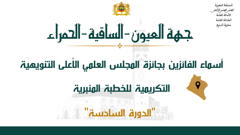 جهة العيون الساقية الحمراء- أسماء الفائزين بجائزة المجلس العلمي الأعلى التنويهية التكريمية للخطبة المنبرية الدورة السادسة