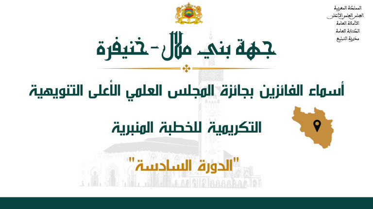 جهة بني ملال-خنيفرة- أسماء الفائزين بجائزة المجلس العلمي الأعلى التنويهية التكريمية للخطبة المنبرية الدورة السادسة