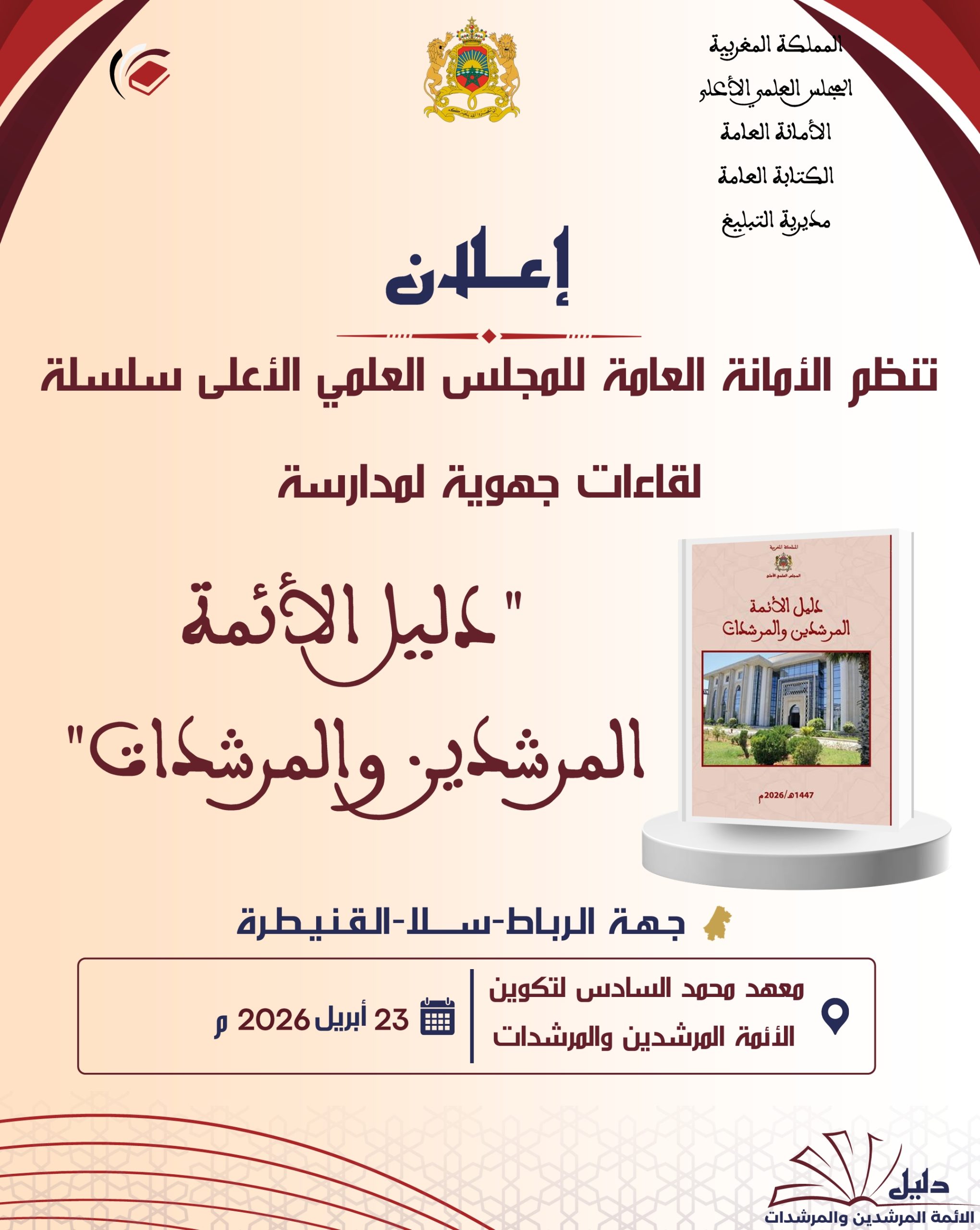 في إطار العناية بكتاب الله عز وجل، وتنزيلا لخطة تسديد تبليغ الدين من أجل بناء حياة طيبة، وبمناسبة انطلاق الدورة الصيفية الثالثة عشرة لتحفيظ القرآن الكريم للتلاميذ والتلميذات وأبناء جاليتنا المغربية المقيمة بالخارج، ينظم المجلس العلمي المحلي بجرسيف بتنسيق مع المندوبية الإقليمية للشؤون الإسلامية، لقاءات تكوينية تواصلية في موضوع: